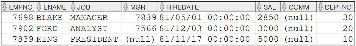 WHERE (DEPTNO, SAL) IN (SELECT DEPTNO, MAX(SAL)