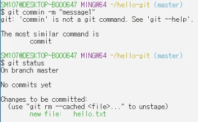 결과 >> git commit -a -m "message" 라고 입력해도 된다.