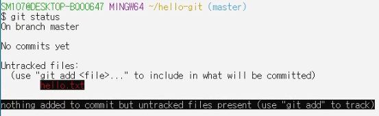 깃에서는 아직 한번도 버전을 관리하지 않은 파일을 untracked files라고 부른다.