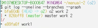 (8) 브랜치를 병합하려면 git merge 명령 뒤에 가져올 브랜치 이름을 적는다. master 브랜치에 o2 브랜치를 가져와 병합하려면 다음과 같이 입력한다.