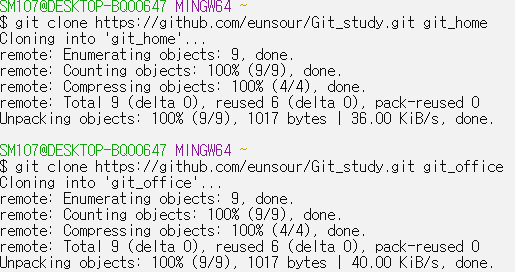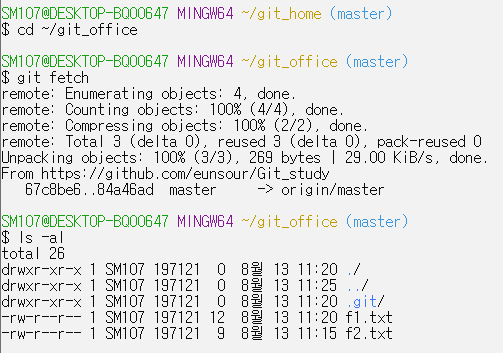 ▶ git_home 디렉터리와 git_office 디렉터리에 같은 내용이 저장되어 있는지 확인해보기